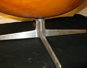 Arne Jacobsen (1902-1971), Ægget med betræk af originalt cognac farvet patineret skind. Opsat på profileret stamme og firpasfod af aluminium, drejefunktion, skallen formet af fiberglasforstærket kunststof med skumpolstring.