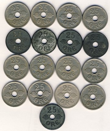 Chr. X, samling 25 øre 1920érne til 1940érne.