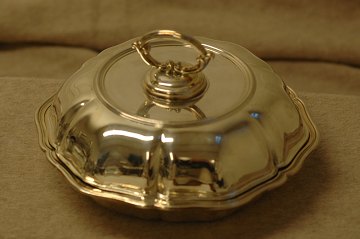 Carl M. Cohr, rundt lågfad af sølv fremstillet hos Cohr Sølvvarfabrik, Fredericia. C.M. Cohr virkede som sølvsmed fra 1893-1937. Stemplet 1937, samt J. Siggaard sølvguardein.