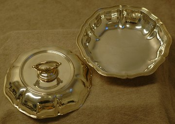 Carl M. Cohr, rundt lågfad af sølv fremstillet hos Cohr Sølvvarfabrik, Fredericia. C.M. Cohr virkede som sølvsmed fra 1893-1937. Stemplet 1937, samt J. Siggaard sølvguardein.