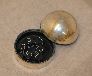 GEORG JENSEN, raflebæger i sterlingsølv og plast m. seks tilhørende terninger. Designet af Dan Christensen.