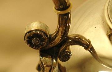 K. Tømmerup, historicistisk kaffekande af sølv, prydet m. egyptisk dødsmaske og stilliseret bladværk. Hankens top er formet som en mytologisk grif. Stemplet "KT" 1887.