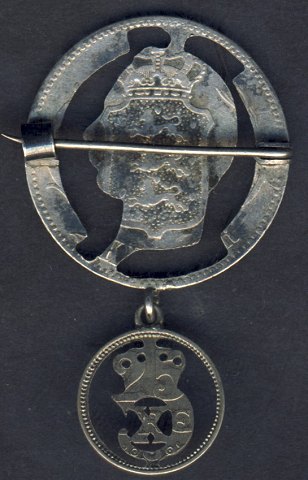 Medalje lavet af udfræset Christian IX, 2 krone og Christian X, 25 øre.