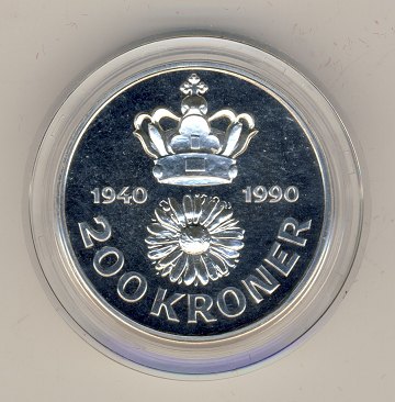 200 kr SØLV, erindring om Dronningens 50 års fødselsdag 1990