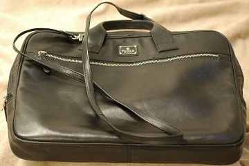 Tiger of Sweden, lap top taske i sort læder. Fremstår med brugsslitage.