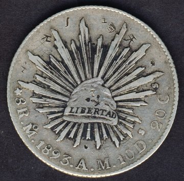 Mexico, 8 real 1893 m. chopmarks, SØLV