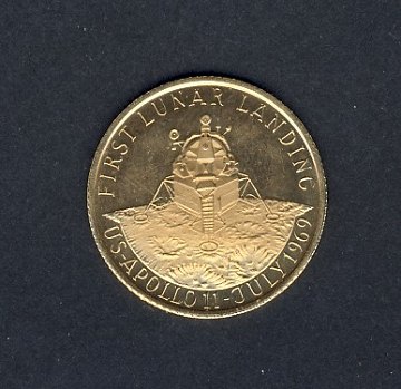 Lille medaille af guld 21,6 kt. Slået til minde om det første menneske på månen 1969. 3,5 gram