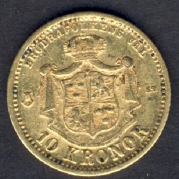 Oscar II, 10 kr 1874 GULD