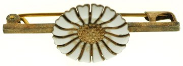 A. Michelsen, Marguerit-broche af forgyldt sterlingsølv m. indlagt emalje. Stemplet AM 925. Ø. 17,3 mm
