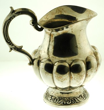 Matias Møller, flødekande og sukkerskål af SØLV, prydet m. bladværk og ciseleringer, begyndelsen af 18-tallet. Stemplet m. mestermærke og bymærke for Haderslev.