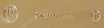 Evald Nielsen (1879 - 1958), kasserolle af SØLV, prydet m. stilliseret bladværk og m. hank og lågknop af horn, indvendig forgyldt. Stemplet "Evald Nielsen, københavnerbymærke, 1918". Ø. 19 cm.
