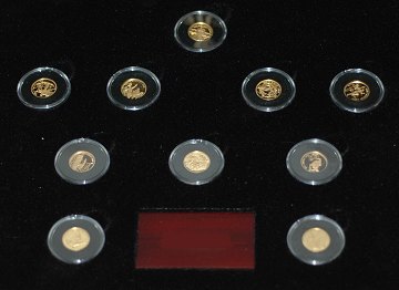 Bulgarien, 5 Levs GULD 2002, 10 stk. proofmønter på hver 1/25 ounce finguld.