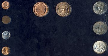 Møntsæt m. mønter prydet af Lincoln og Kennedy.