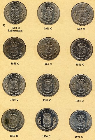 Møntalbum m. danske 5 kr fra 1960-1987 - fin typesamling m. ialt 36 mønter.