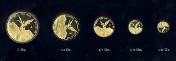Mexico Libertad "Gold Series" proof sæt bestående af 1 oz, 1/2 oz, 1/4 oz, 1/10 oz og 1/20 oz. Mønterne har finheden 0.999 altså 24 karat guld. Samlet vægt 1,9 ounce finguld.