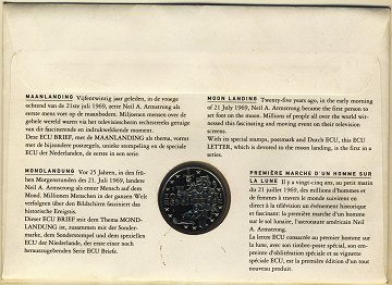 Mønten er præget i anledning af 25 året for amerikanernes månelanding d. 21. juli 1969, hvor Neil Armstrong blev den første mand på månen.