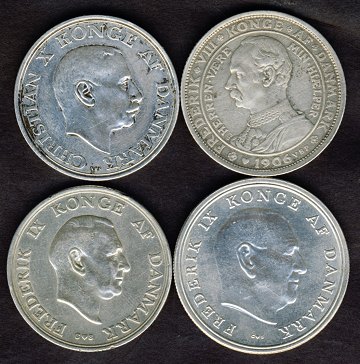 2 kr 1906, 2 kr 1937, 2 kr 1958 og 5 kr 1964