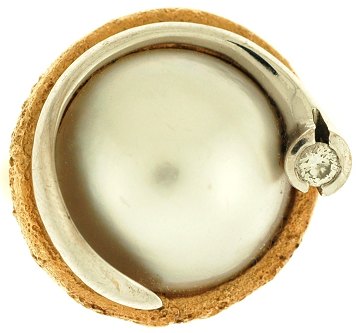 Ole Lynggaard, diamantring af 14 kt delvist satineret GULD m. stor south sea perle og en brillantsleben diamant på 0,08 ct. Str. 52.