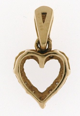Diamantvedhæng formet som hjerte, prydet m. 14 brillantslebne diamanter på ialt 0,10 ct. Stemplet 585.