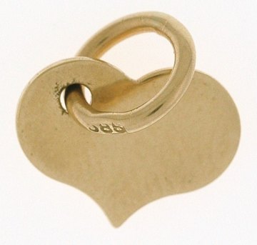 Vedhæng af guld, formet som hjerte. Stemplet "585".