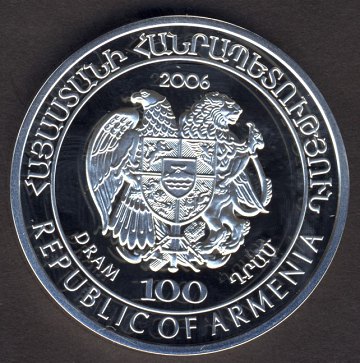 Armenien, 100 dram SØLV 2006 Proof - Fridtjof Nansen