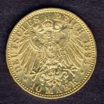Preussen, Wilhelm II, 10 mark GULD 1893A - KM 520