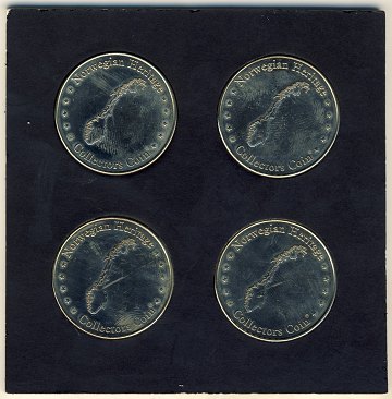 Souvenirsæt bestående af 4 stk. medailler, præget i erindring om den norske opdagelsesrejsende, Thor Heyerdahls, verdensberømte ekspeditioner.