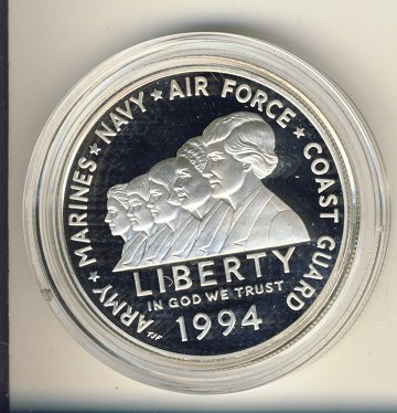 1 dollar SØLV 1994P proof - "Women in Military Service"