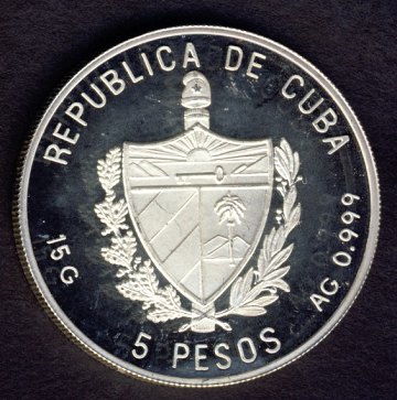 Cuba, 5 pesos FINSØLV 1993 - Proof - KM 524.3
