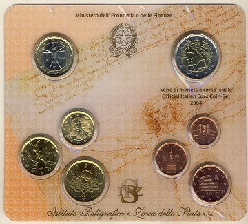 Møntsættet medfølges af etui prydet m. Leonardo da Vinci.
