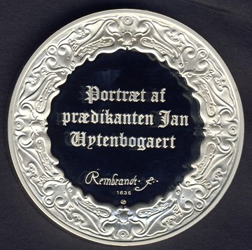 Rembrandt - medaille af STERLINGSØLV - "Portræt af prædikanten Jan Uytenbogaert"