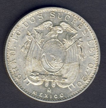 Ecuador, 2 sucres SØLV 1944 - KM 80