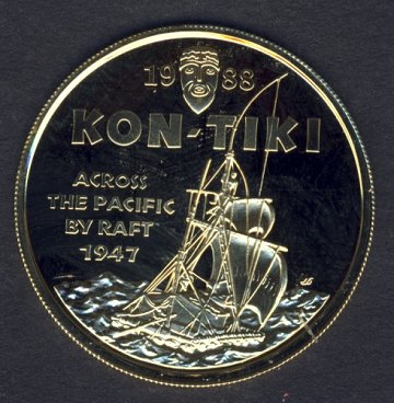 Præget i erindring om Thor Heyerdahls Kon-Tiki ekspedition i 1947.