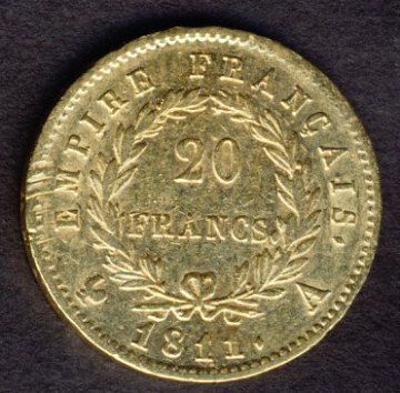 Frankrig, Napoleon I, 20 francs GULD 1811A - KM 695.1