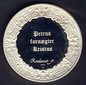 Rembrandt - medaille af STERLINGSØLV - "Petrus fornægter Kristus"
