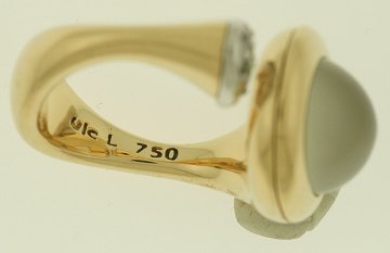 Smuk Ole Lynggaard Emeli ring af 18 kt. GULD, prydet m. stor månesten, samt brillantslebne diamanter på ialt 0,15 ct. Str. 51 1/2. Stemplet "Ole L - 750".