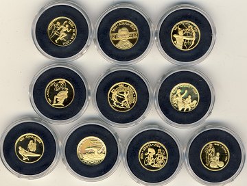 Bestående af 10 stk. proofmønter på hver 1/25 ounce finguld.