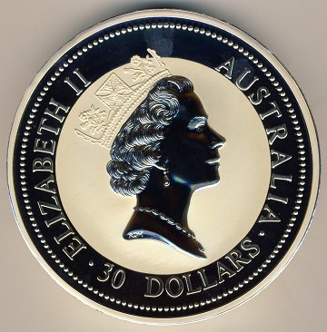 Australien, 30 dollars SØLV 1995 - Kookaburra 1 kg FINSØLV