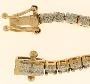 Tennisarmbånd af 14 kt. GULD prydet m. talrige brillantslebne diamanter på ialt ca. 1,50 ct. Stemplet "BNH 585". L. 20 cm.