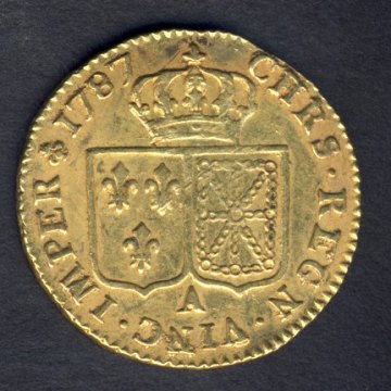 Spændende fransk guldmønt fra 1787, præget i Paris.