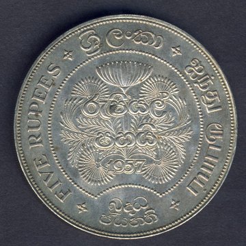 Sri Lanka, 5 rupees SØLV 1957 - KM 126