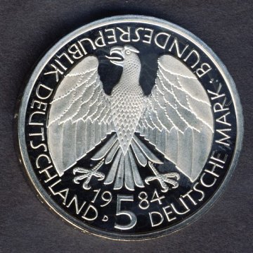 Tyskland, 5 mark SØLV 1984D - Proof - KM 160