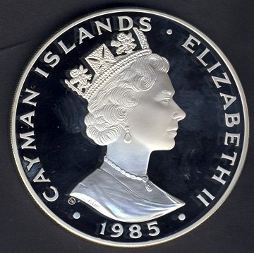 Cayman Islands, 50 dollars STERLINGSØLV 1985 Proof - KM 83