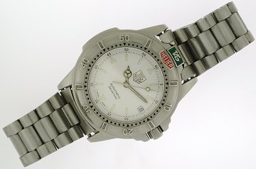 Tag Heuer automatisk herrearmbåndsur af stål, safirglas, datoangivelse ved 3" position, bevægelig lynette, original lænke. Diam.: 38 mm.