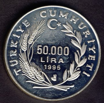 Tyrkiet, 50.000 lira STERLINGSØLV 1995 Proof - KM 1038