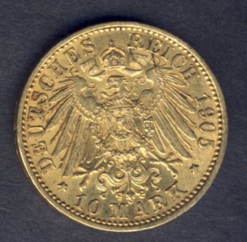 Preussen, 10 mark GULD 1905 - KM 520