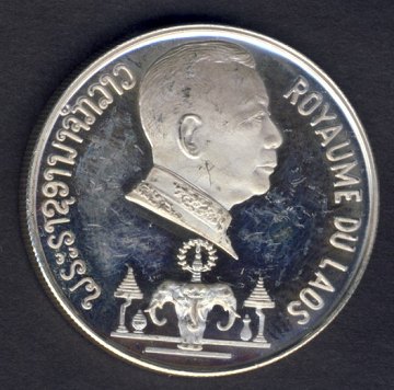 Laos, 5.000 kip STERLINGSØLV 1975 Proof - KM 16.2