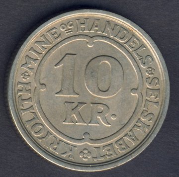 Ivigtut Kryolithbrud, 10 kr 1922 - Nydelig