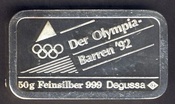 Sølvbarre - 50 gr. FINSØLV - "Winterspiele ´92 Albertville"