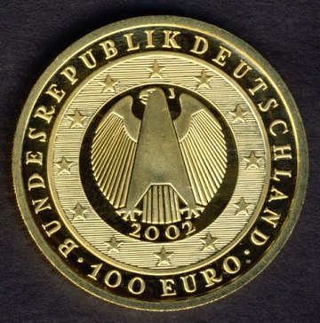 Tyskland, 100 euro GULD 2002J - "Übergang zur Währungsunion"